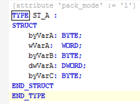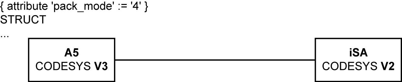Eine Struktur wird mittels {attribute 'pack_mode' := '4'} in ein zur iSA (CODESYS V2) kompatibles Speicherlayout angepasst.
